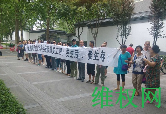 6月30日,我们数十个员工再次到中共陕西省委常委院大门口请愿。我们打出标语,要求省委领导解决招待所停业、两年没有给我们发工资的问题。我们要生活!我们要生存!