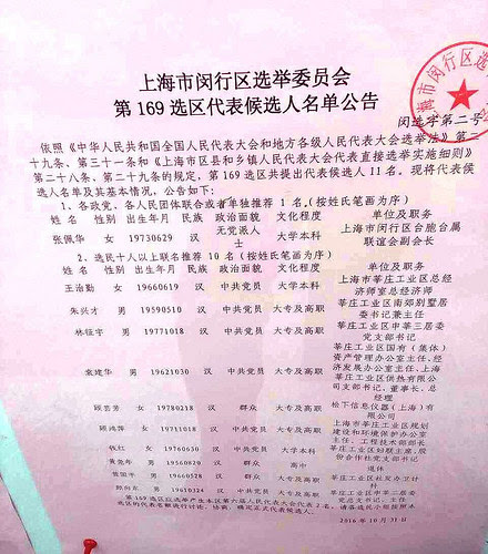 请闵行区第169 选区的选民们为黄尧年同志当选闵行区人大代表投上赞成一票,您的一票至关重要,是民意的表达!