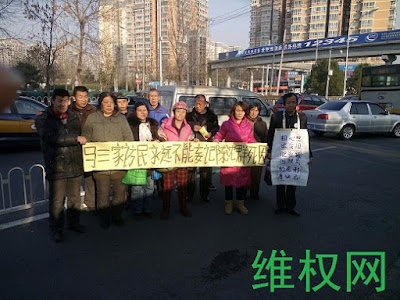 (维权网信息中心报道)本网获悉:今天(2016年11月24日)上午,在京维权人士吴继新、张关库、朱桂琴、刘华、陈毛改、于世文、王金兰、刘先枝、杨忠生等,为被截访中疑似车祸中去世的辽宁信访人陈沈群拉横幅,要求当局公布令人信服的陈沈群车祸的调查报告,抗议辽宁公安抢夺尸体,暴力伤害死者家属的行为。